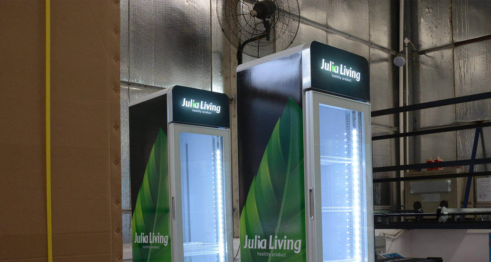 Freistehender Retro-Kühlschrank mit Leuchtkasten