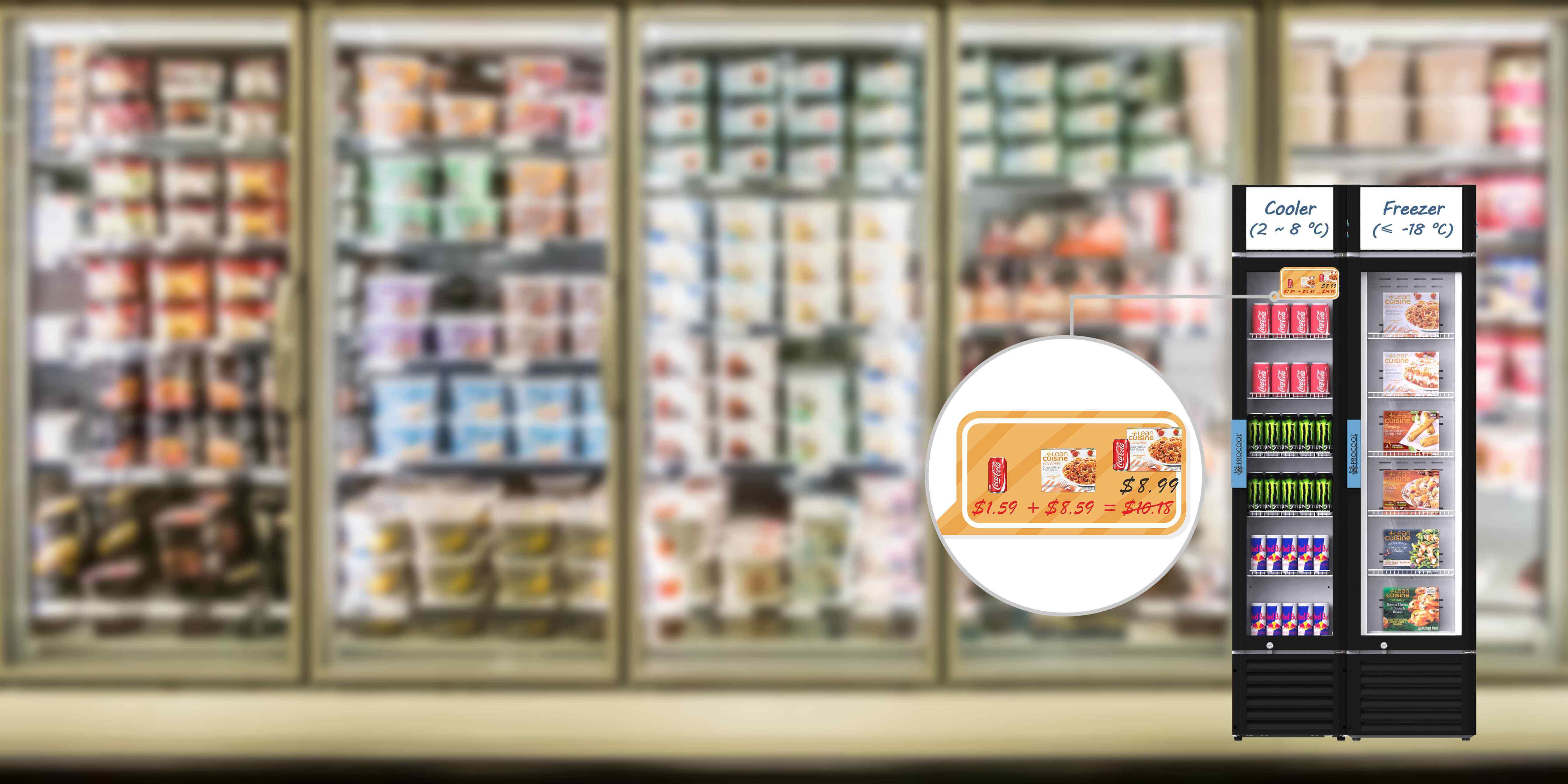Des autocollants translucides fantaisie ou des logos gravés sur les portes en verre sont disponibles pour rendre ce combo plus attrayant et vous apporter plus de ventes impulsives. De plus, vous pouvez mettre vos publicités groupées sur la lightbox pour attirer davantage l’attention des consommateurs.