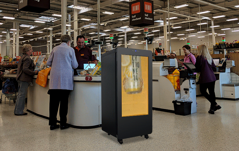Designed for eco-friendly appeal, the Freshbox-4 combines the flexibility of a corrugated cardboard exterior with efficient refrigeration. It’s a lightweight, eye-catching display fridge that is perfect for seasonal promotions. With its unique design and changeable cardboard, the Freshbox-4 offers a sustainable display solution that attracts customers looking for fresh produce or beverages, making it a distinctive addition to any supermarket.